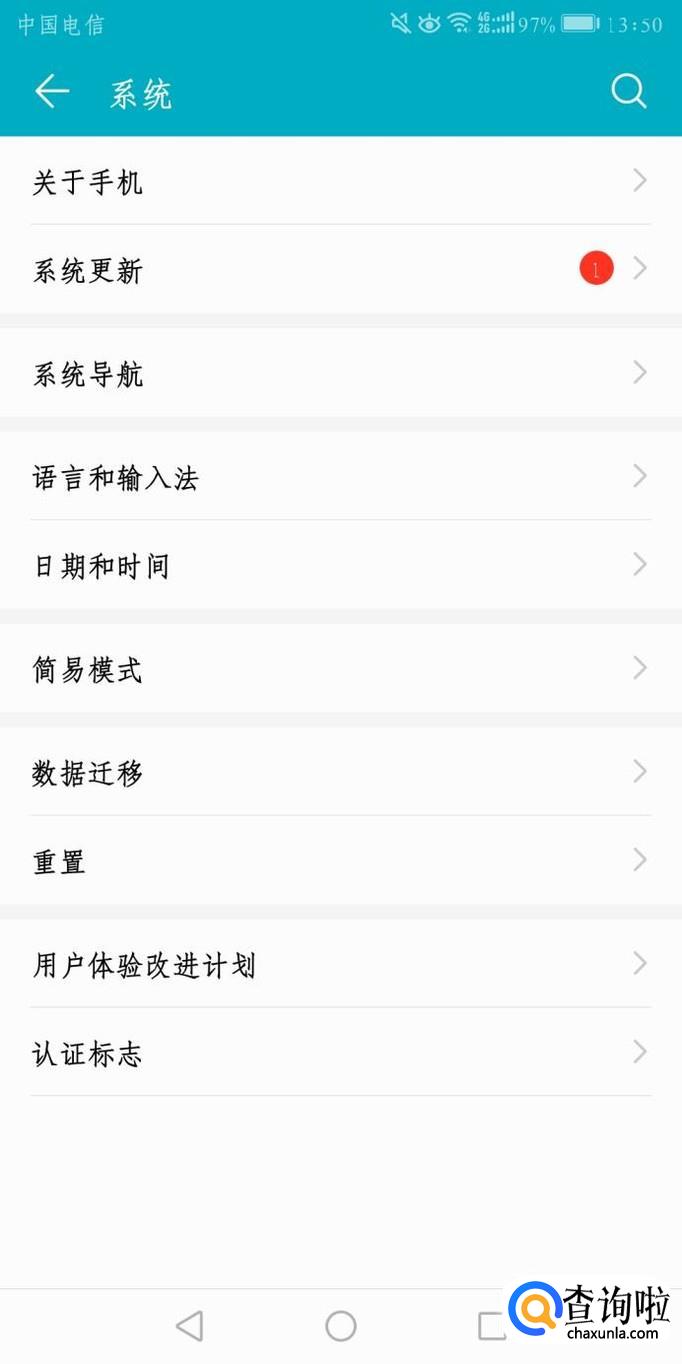 找到关于系统后,点击进去,下滑,找到系统导航。