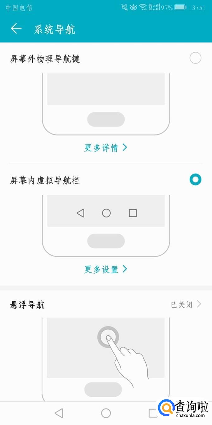 找到系统导航后点击进去,会有三种模式,最后一种是这个小浮球。