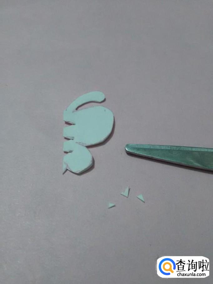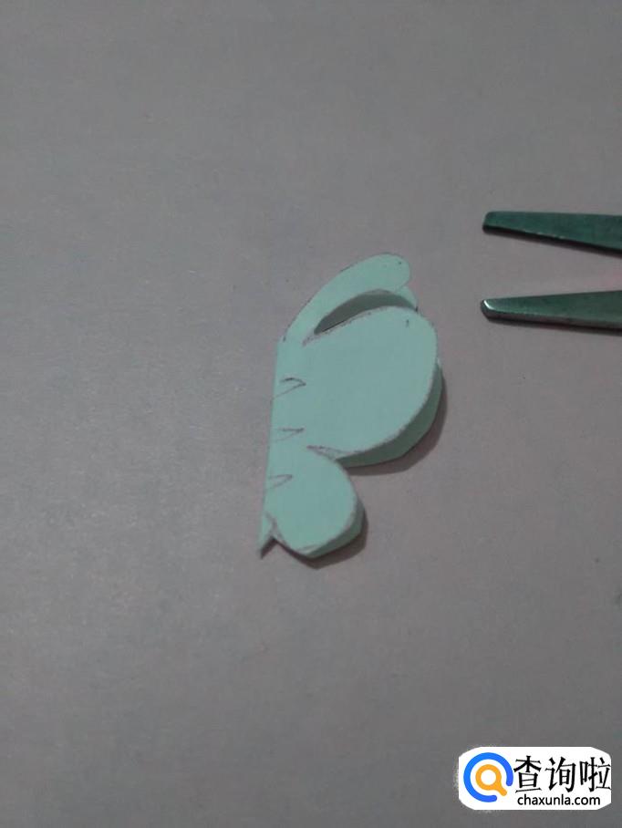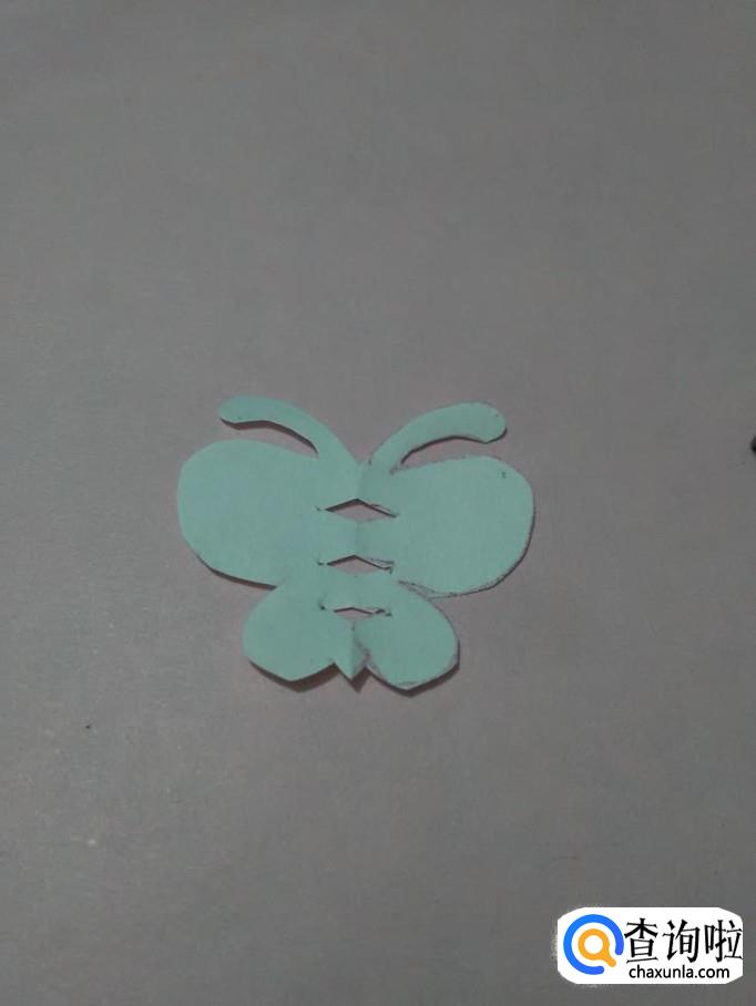 再用剪刀将蝴蝶身上的三个三角形剪下来。