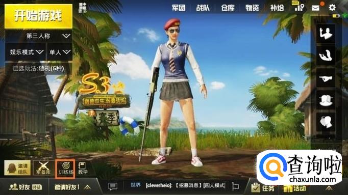 首先在大厅里面,退出队伍,点击左下角的“训练营”。