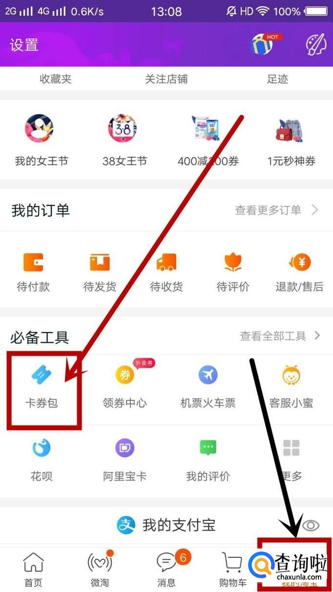 手机淘宝用户,在“我的淘宝”找到“卡卷包”点击进入,然后找到“购物津贴”点击进入,我们就可以查看到自己的“购物津贴”了。