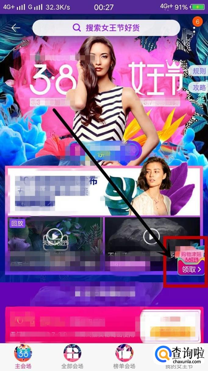 点击“天猫3.8女王节”进入活动主会场,如图所示。