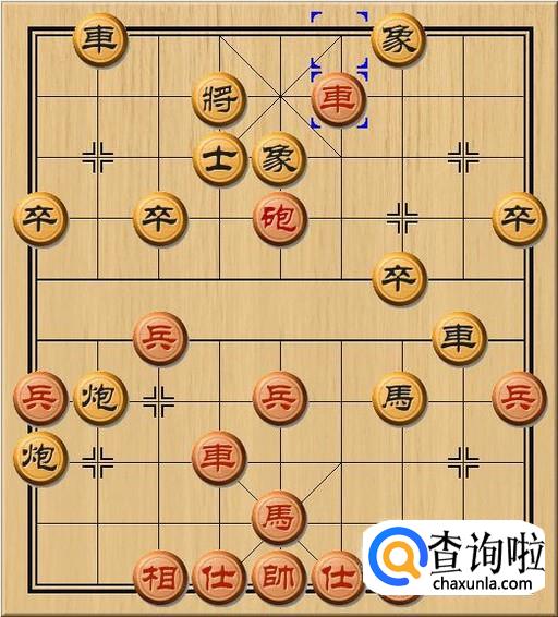 黑方将4退1,黑方老将只好退后一步,避开红方右路车的横向将军。当黑方老将退后时,黑方士失去了黑方老将的庇护,黑方士已经无力防御红方当头车了。如图所示。