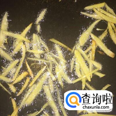 开大火,锅里加入适量的食用油,待油温升高后,火调为中小火,将姜丝下入锅里,炒香;