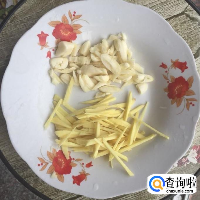 取一两块姜,将姜去皮后洗净,再切成丝状;