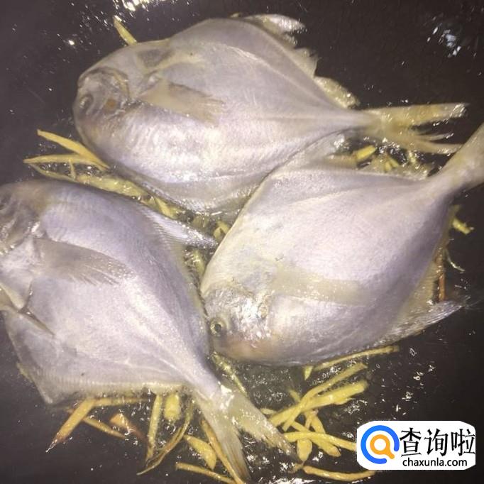 将鱼下锅后,大约30秒不动它,待一面煎至金黄,再翻面,煎另外一面;