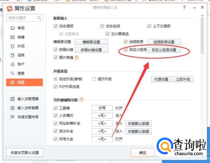 进入之后,对快捷键、候选位置,快捷语句进行编辑设置,点击“确定”即可。