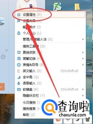 右击一下输入法,然后选择“设置属性”,如图所示。