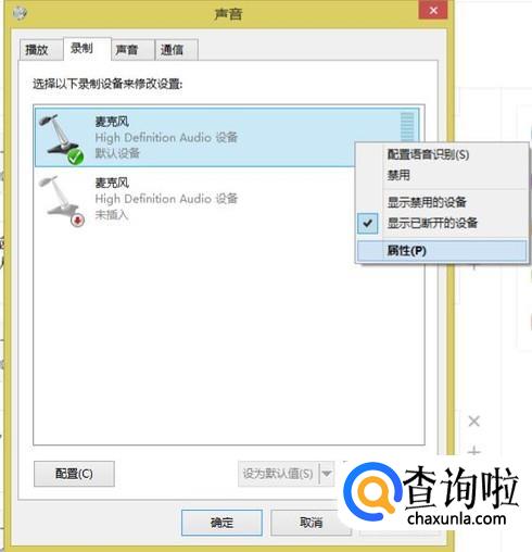 右键单击打开菜单栏,进入录制设备