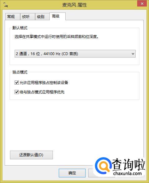 当你更改完成以后,可以在侦听里面试试录制效果是否达到,这里都是勾选默认设备最后再高级里面检查设置是否是这样,一定要全部勾选