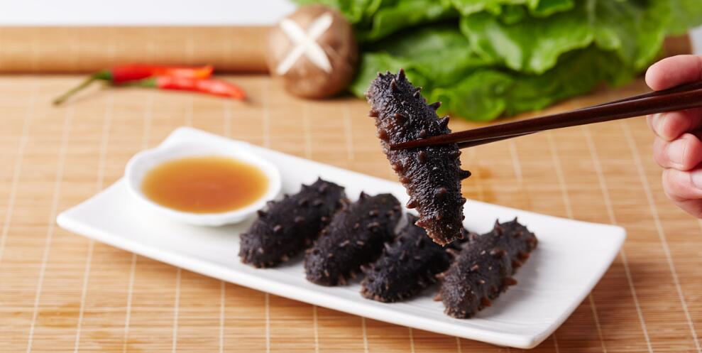 下八珍:海参、龙须菜、大口蘑、川竹笋、赤鳞鱼、干贝,蛎黄、乌鱼蛋。