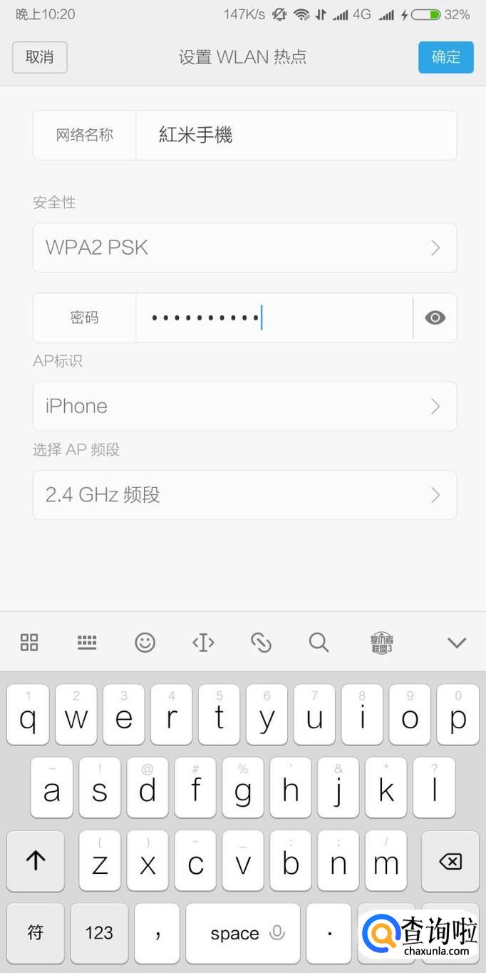 为了防止我们的手机热点被别人随意连接,可以进入“设置WLAN热点”选项,设置我们的热点密码。