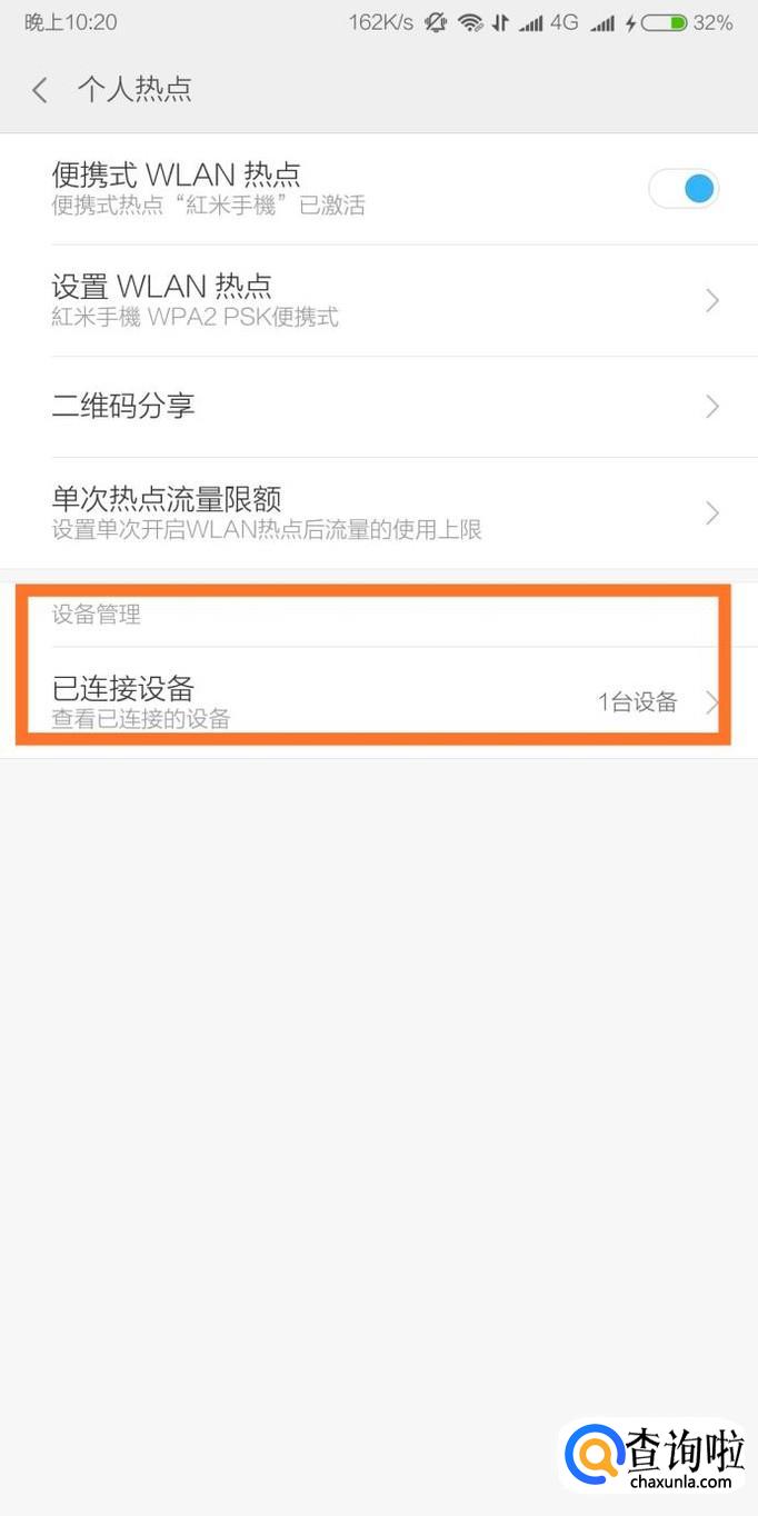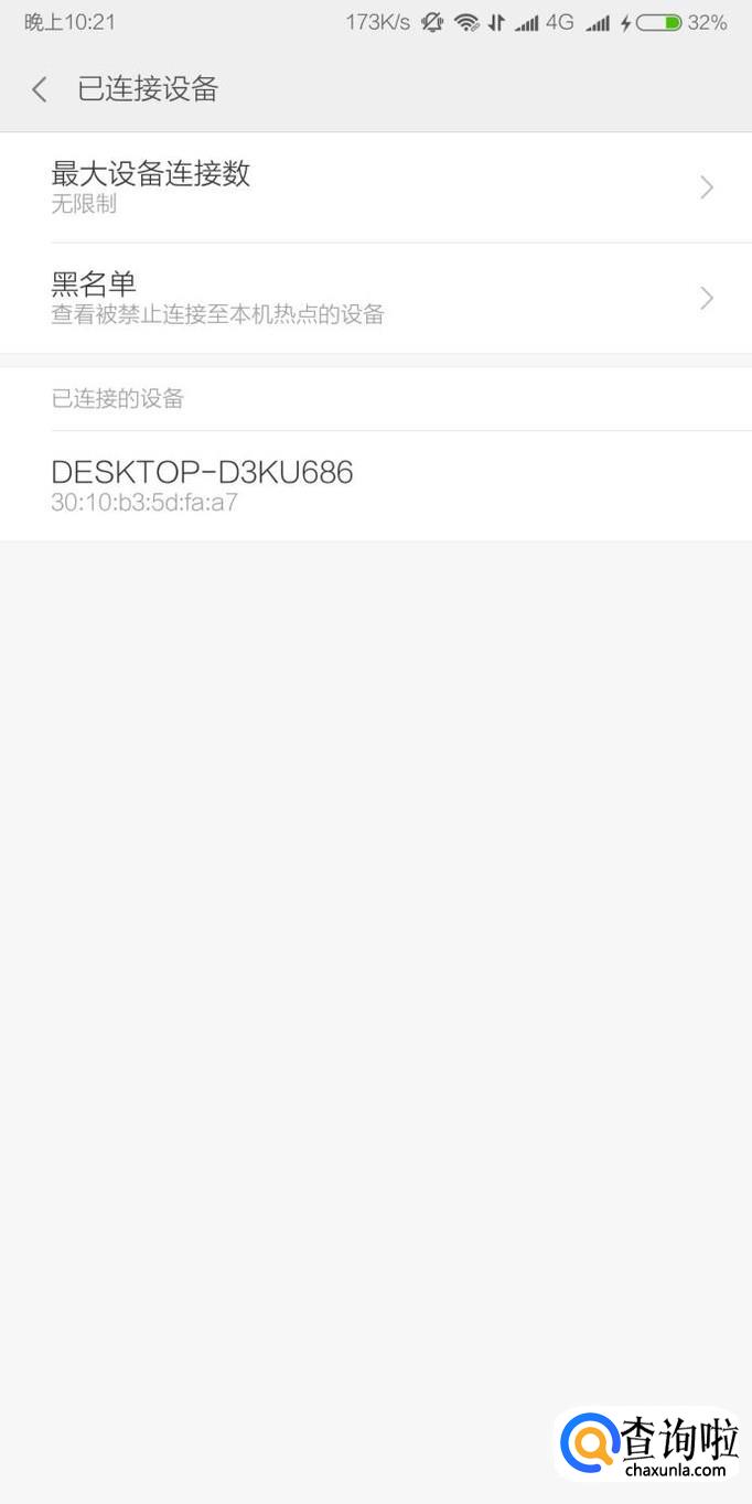最后可以进入“设备管理”查看有什么设备连接到了我们的WIFI热点,当然也可以设置黑名单和设备最多连接数量。