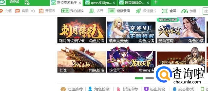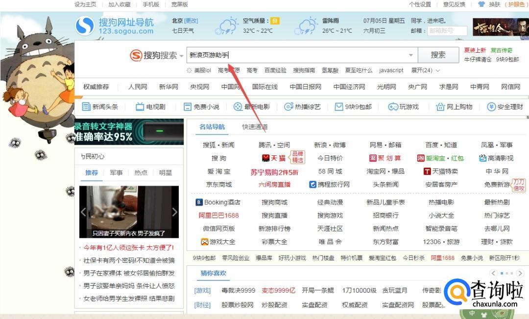 首先,在搜狗高速浏览器中搜索“新浪页游助手”。