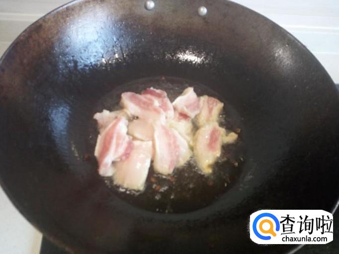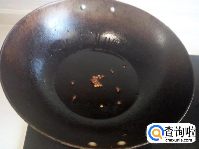 锅内放入油加热,油热后放入花椒爆锅,然后放入肉翻炒。