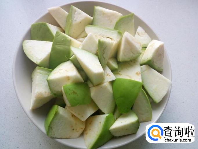茄子用水清洗干净,控干水分,切成块(块的大小根据个人喜好)。