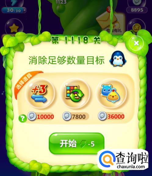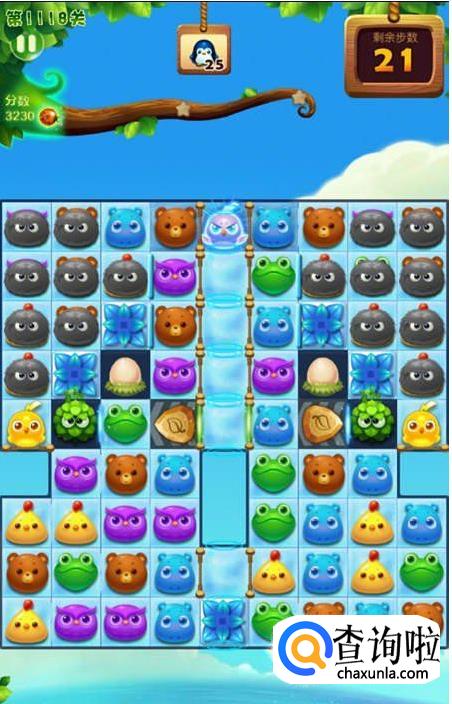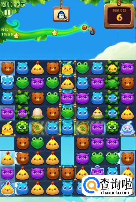 开心消消1118关三星有点难度,这一关主要任务是收集25个企鹅。这一关也是比较有难度的,因为会有很多灰毛球,还有很多厚冰块不好消除。而且小动物很容易被藤蔓缠上。不过这一关只要利用好了闪电鸟和魔力鸟,三星通关还是有希望的。
