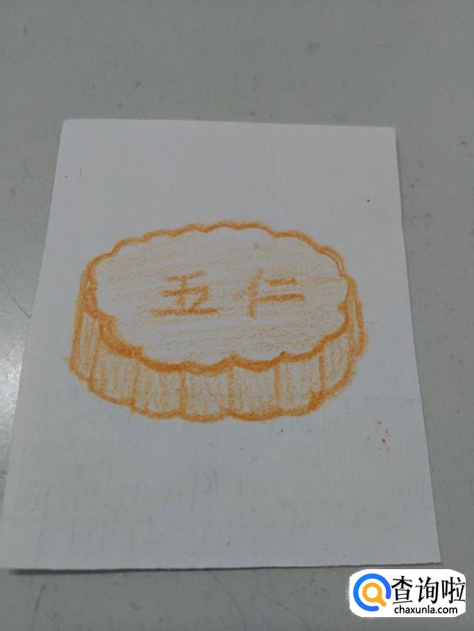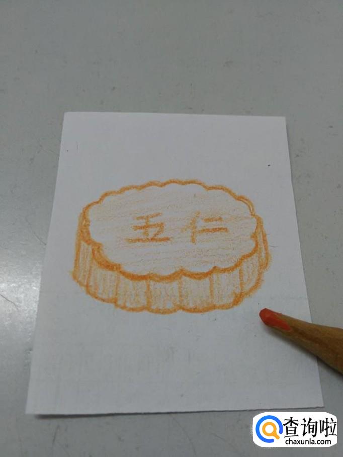 最后,用彩笔将月饼涂成桔黄色,月饼就画完了。