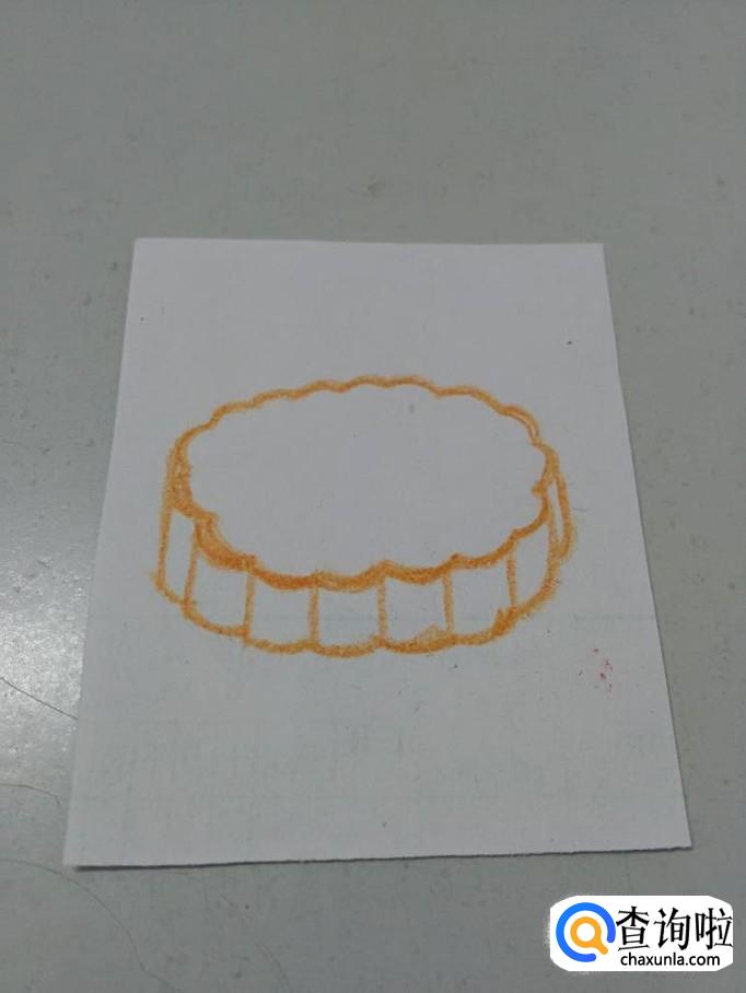 在椭圆形下面,再画一条由弧线组成的圆弧形,表示月饼的底部。