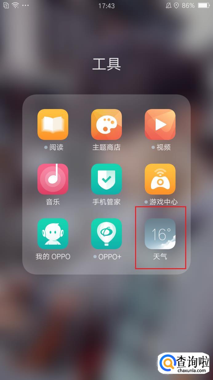 首先我们先解决一下手机自带的天气预报系统,自带的问题,我们先找到天气这个软件,打开它,进入到天气系统的界面,找到设置,点击它。