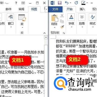 随即,当前屏幕即显示两个word文档。两个文档并排显示。