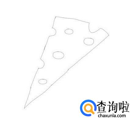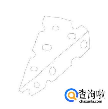 画好奶酪的上面之后,在右侧再画出奶酪的侧面,如图所示: