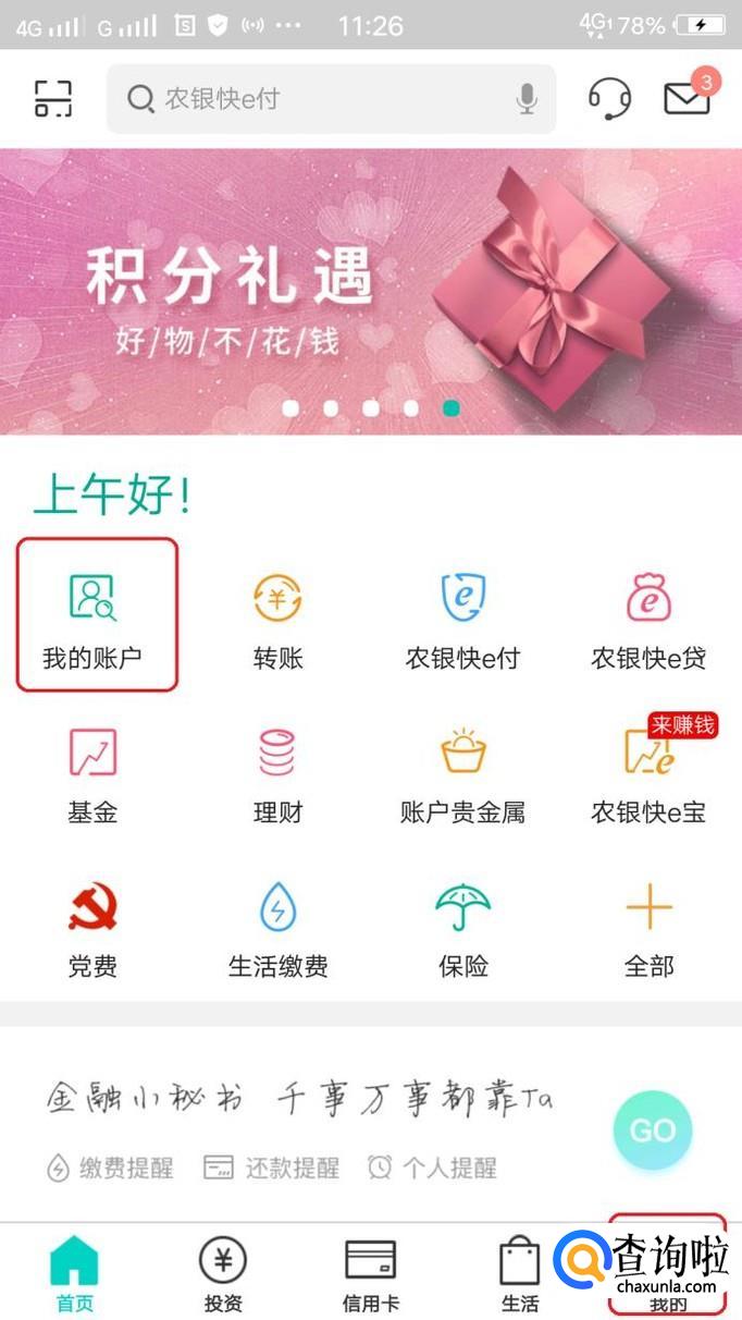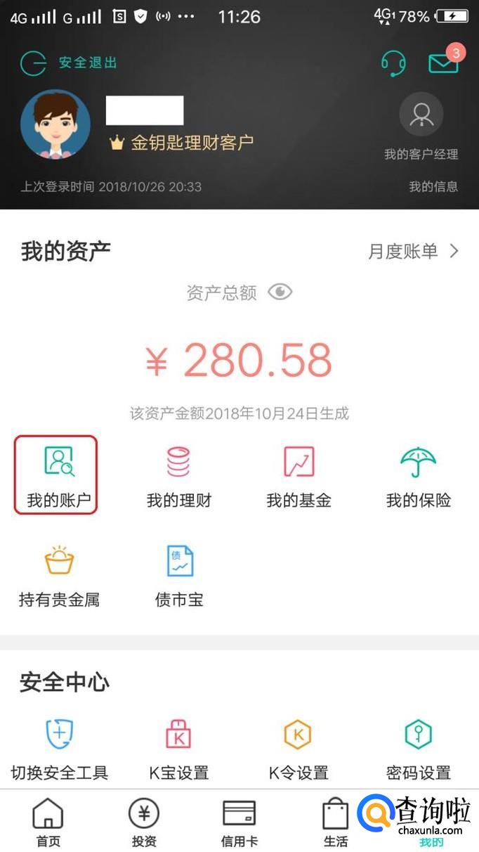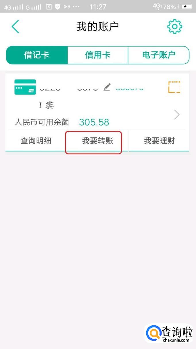 此时,就可以操作掌上银行了,如图所示,如果我们需要转账,就点击进入“我的账户”,然后点击“我要转账”就可以了。