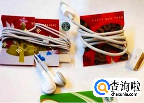 耳机电源缠在卡片上,耳机和电源不要随意的到处乱塞,否则很有可能在行走的过程中不小心扯下来丢失掉最好的方法,能够在出行之前将耳机根电线缠绕在卡片上,这样收纳起来比较简洁。