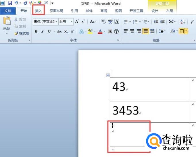 首先,我们打开一个word文档,如图所示,然后我们将输入符放在图示中的单元格,之后我们点击插入;
