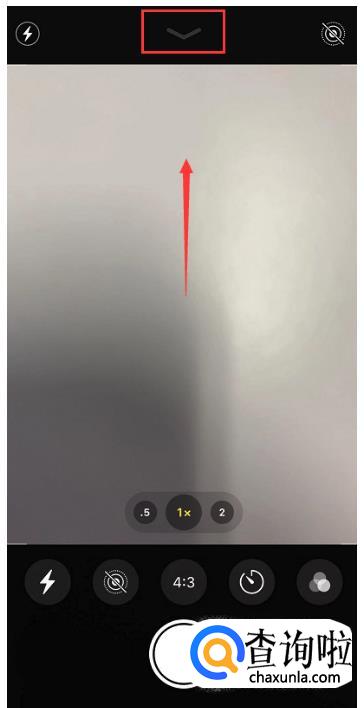 打开照相机,点按屏幕上方中间部分的图标,或在取景框中间用手指向上滑动,即可查看到隐藏的工具栏:
