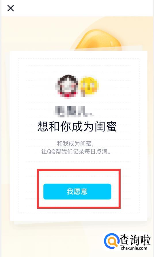 点击邀请信息进入后,选择“我愿意”,亲密关系就建立成功了。