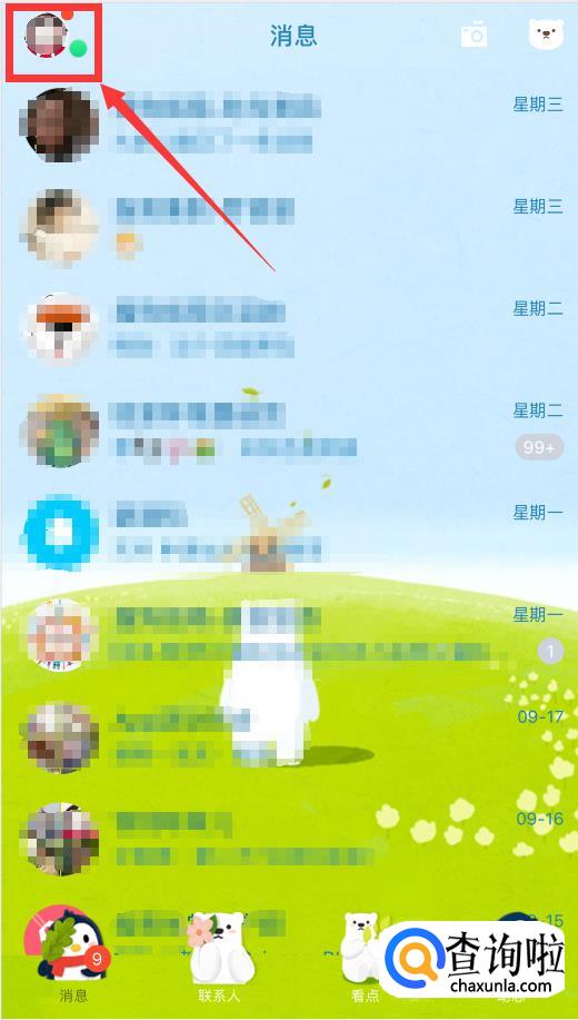 打开手机QQ,登录后点击面板左上角的头像。