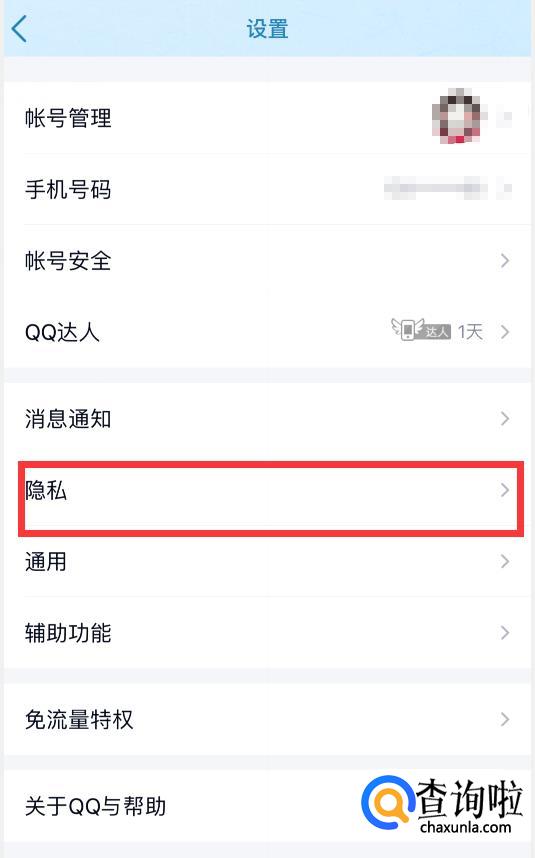 在设置界面中,点击“隐私”。