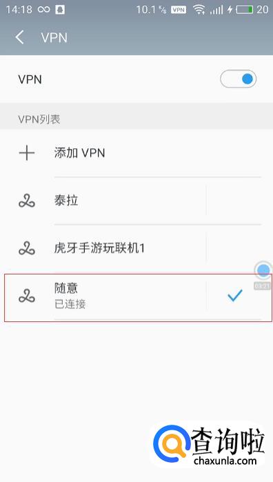 保存VPN,返回到上一个界面,点击刚才创建的VPN连接。