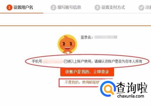显示该手机号已被注册,选择不是自己的账户,换邮箱注册。