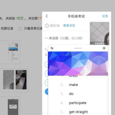 2、除了用抓拍到的图片监考以外,还会看切屏次数,只有当系统弹出切屏提醒的时候,才会被判定是切屏,会在屏幕上方显示。