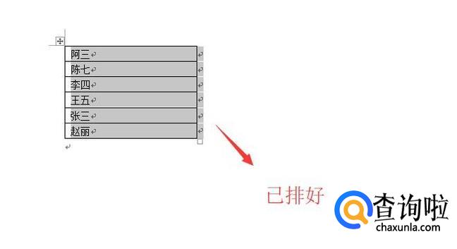 最后回到表格列中,你会发现列内容已经按照拼音由小到大进行排序了,如下图所示