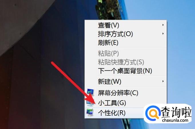 右键点击桌面上的空白地方,然后点击‘个性化’