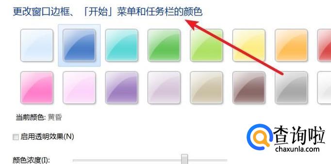 在这里,我们就可以看到可以修改任务栏的颜色了,点击选中你要改的颜色就行了,比如选中红色。