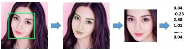 人脸提特征过程(最右侧数值串为“人脸特征”)