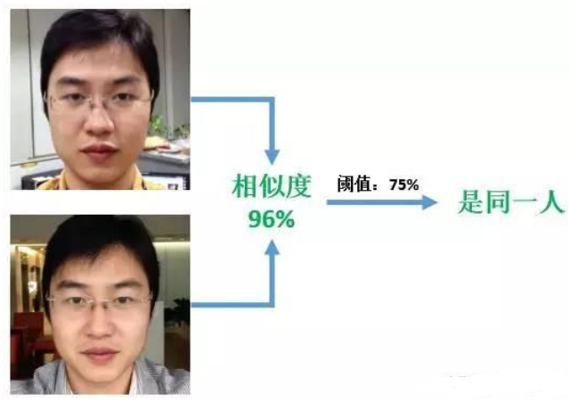 它的输入是两个人脸特征,通过人脸比对获得两个人脸特征的相似度,通过与预设的阈值比较来验证这两个人脸特征是否属于同一人(即相似度大于阈值,为同一人;小于阈值为不同)。