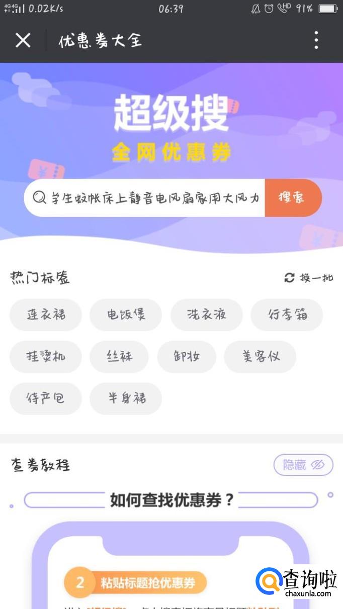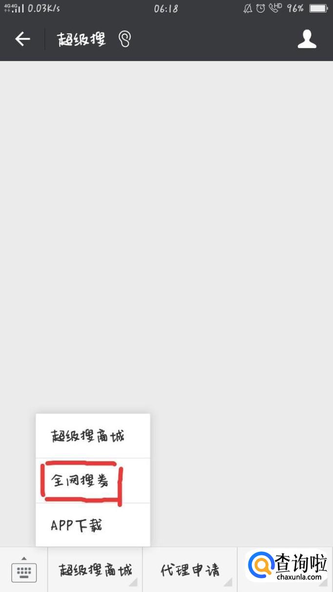 点击关注,关注此公众号,然后点击超级搜商城里面的全网搜券。进去超级搜界面。