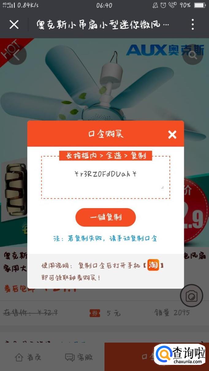 找到优惠券,点击口令购买,然后一键复制。