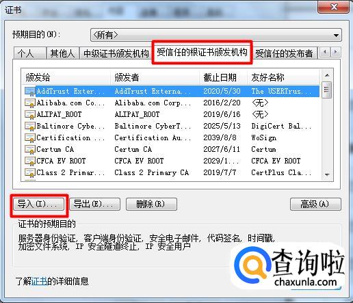 选择(受信任的根证书颁发机构),然后则点击(导入),如图。问题就这样简单解决了。