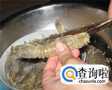 先用剪刀剪掉虾头。