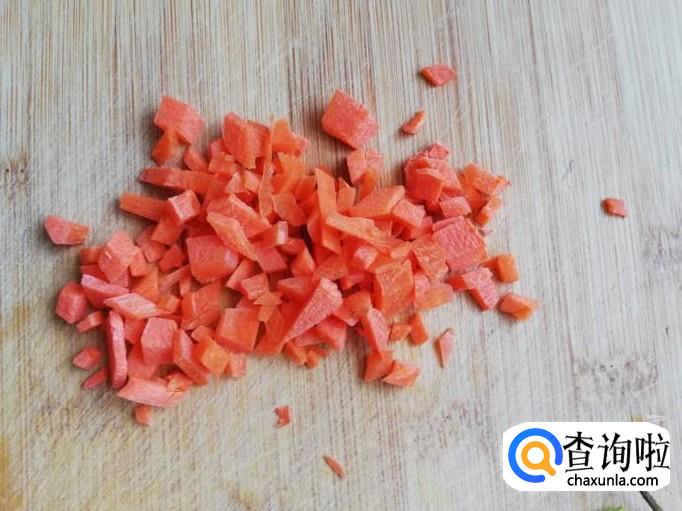 胡萝卜碎放入锅中翻炒,炒至胡萝卜出油