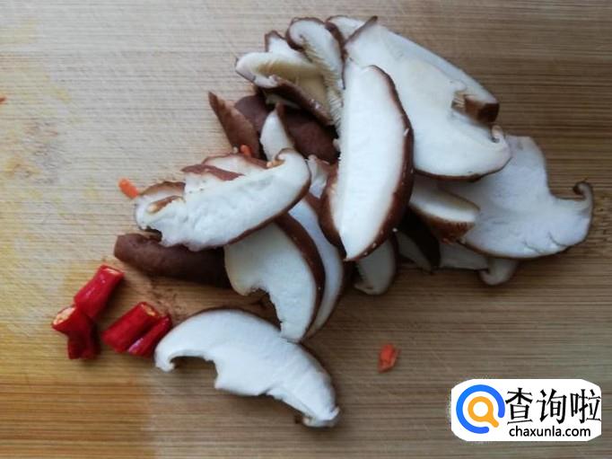 香菇和辣椒洗干净,香菇切成片,辣椒切段