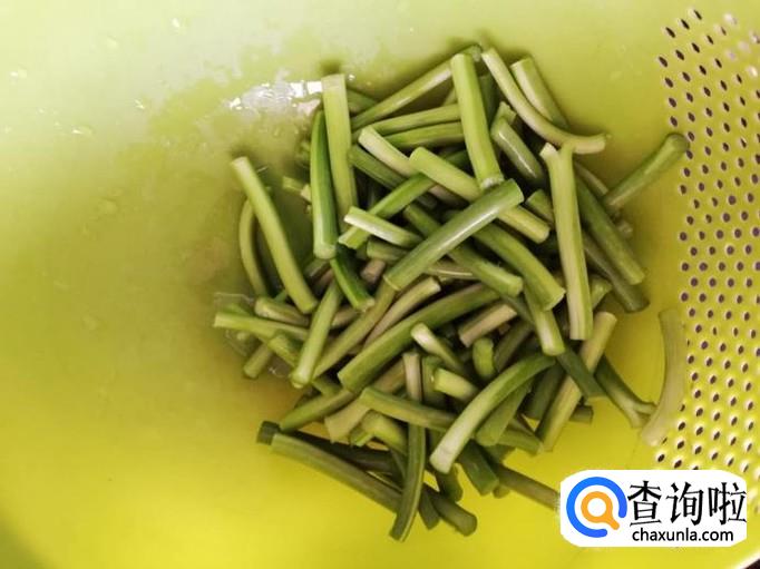 买点新鲜的蒜薹洗干净,切成段,如果时间充足可以给蒜薹撕筋,吃起来会更嫩