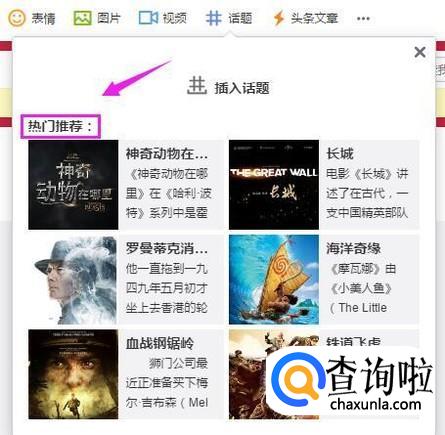 在我们的输入框里面,就有最热的话题了,这些话题一般都是近期的热点,值得我们插入,如图所示。