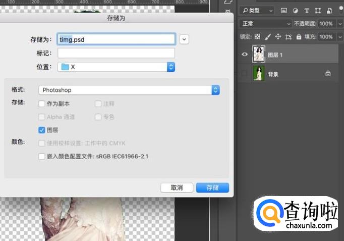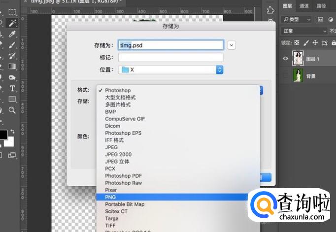 在文件格式中,将格式选择为“PNG”即可保存透明的抠图。